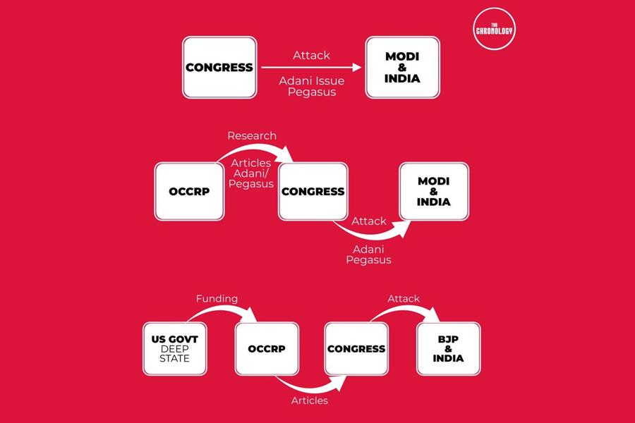 Another post said: “Another issue where Congress caused significant disruptions in Parliament was the Pegasus controversy. The common link between the Adani and Pegasus issues is that the material used by the Congress party to target the government in both cases was provided by OCCRP, a Europe-based investigative journalism group. This suggests a possible special connection between Congress and the OCCRP in promoting these narratives against India.”
