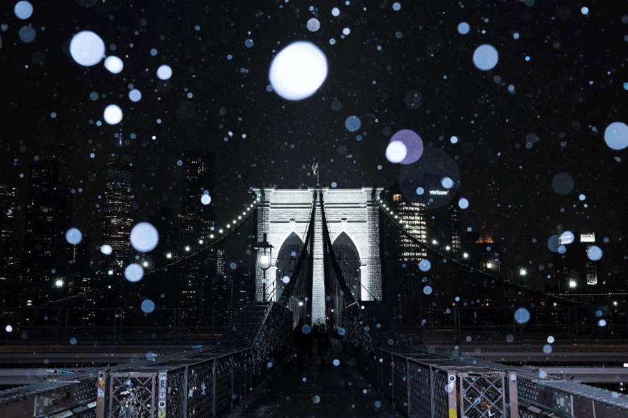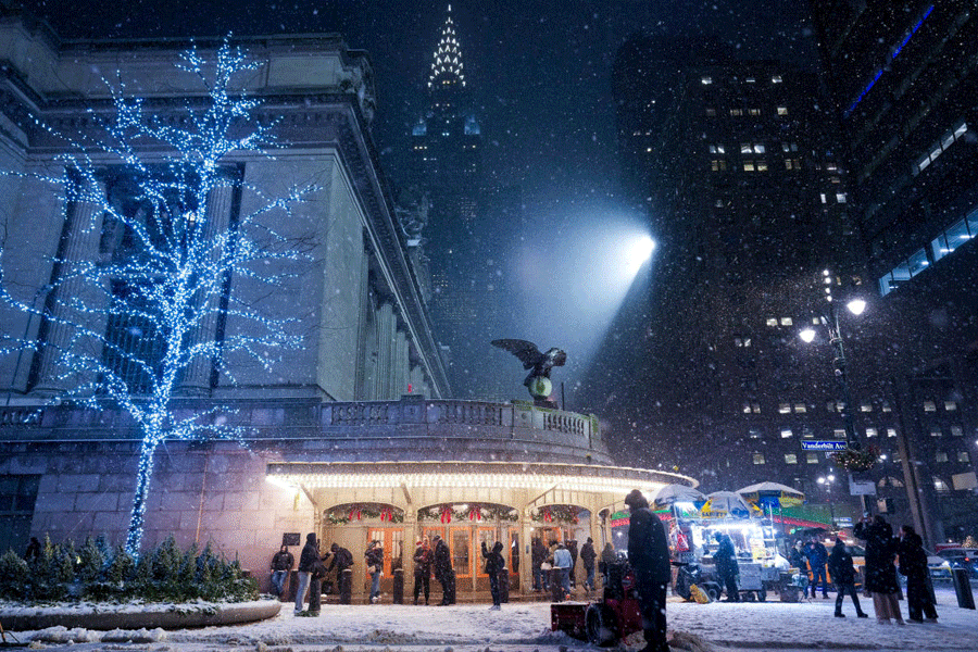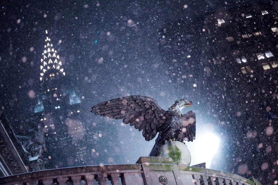 Snow began falling in western New York state and the New York City area on Friday evening and was expected to intensify on Saturday.