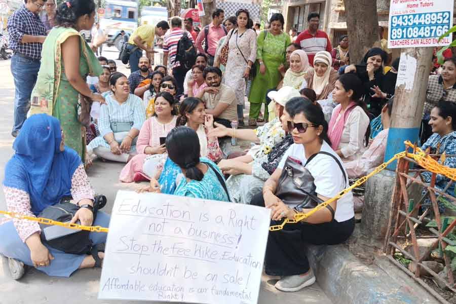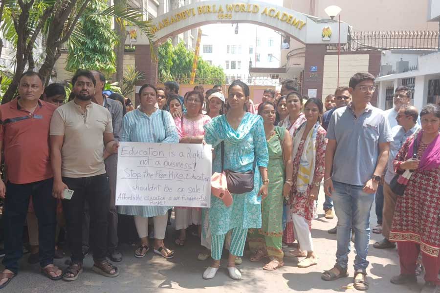 On Monday, a protesting parents’ body gathered at the Mahadevi Birla World Academy to demand affordable education. The guardians triggered an upheaval only after being informed of a 28-30 per cent hike in fees following the installation of airconditioners in classrooms.