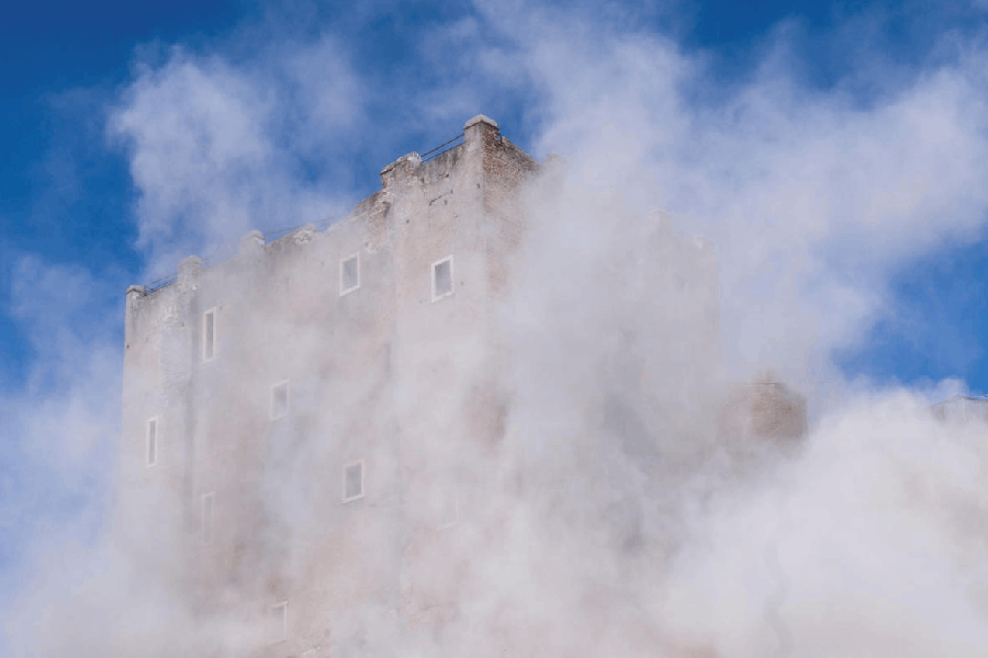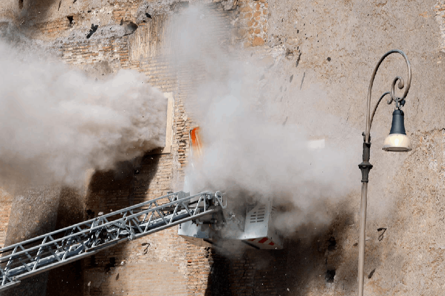 It suffered at least two collapses, according to videos posted on social media and Reuters footage. On both occasions, clouds of dust came billowing out of the windows, along with the sound of collapsing masonry.