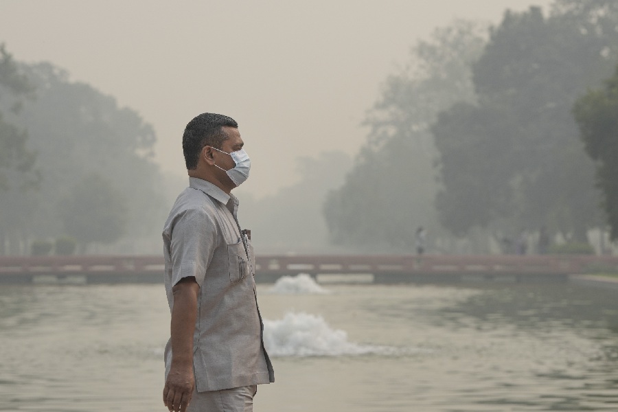 A man wears anti-pollution mask to protect himself from growing level of air pollution, in New Delhi. Health professionals have expressed concerns that air pollution is increasing asthma and lung problems in children and the elderly.
