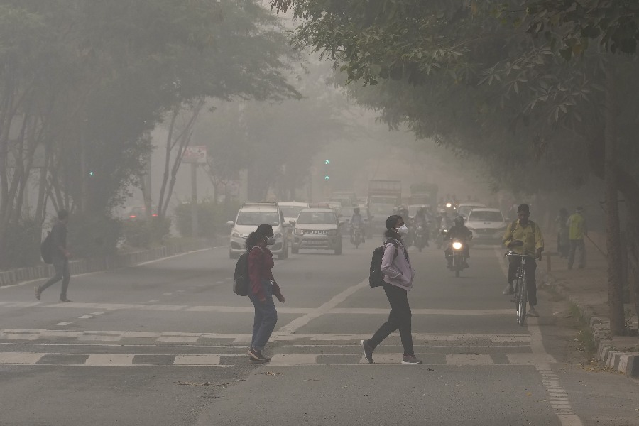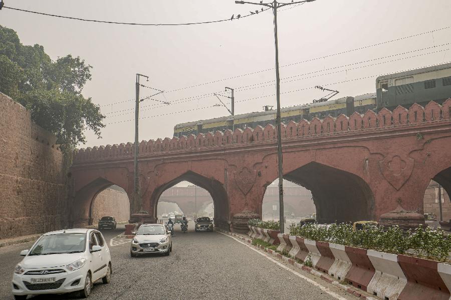 A train runs its tracks amid hazy weather conditions, near Red Fort in Old Delhi. The CAQM has said the pollution levels are only 'expected to increase further' owing to highly unfavourable meteorological and climatic conditions.