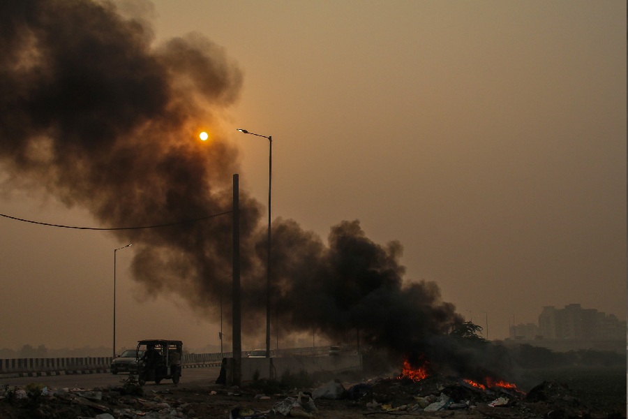 Smoke emanating from burning garbage adds to the air pollution, in Gurugram. According to a numerical model-based system developed by the Indian Institute of Tropical Meteorology in Pune, smoke from stubble burning accounted for 25 per cent of the PM2.5 pollution in Delhi on November 2, and this figure may rise to 35 per cent on November 3.