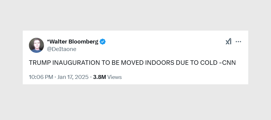 A user shared the headline “TRUMP INAUGURATION TO BE MOVED INDOORS DUE TO COLD” and the comment section erupted. Even the weather doesn’t support Trump.
