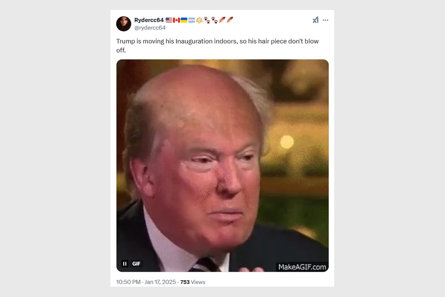 One witty reaction claimed Trump moved his inauguration indoors to protect his hairpiece from blowing away “Trump is moving his Inauguration indoors, so his hair piece don't blow off” read the post.