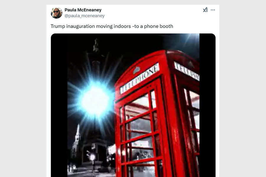In one of the more exaggerated reactions, a commenter joked, “Trump’s inauguration is moving indoors, to a phone booth.” Accompanied by a fitting image, the joke was a part of the running theme of small crowds.