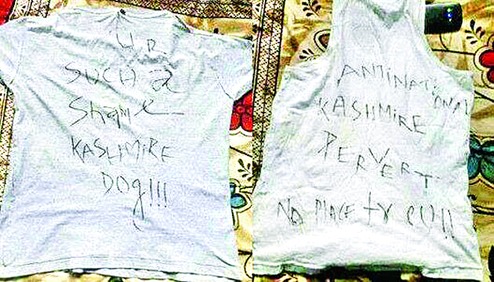 Hashim said he had been shocked on Friday morning to see a slanderous message written on his door at the Malviya Bhawan hostel, whose inmates are research scholars, proclaiming him a terrorist because of his Kashmiri origins.