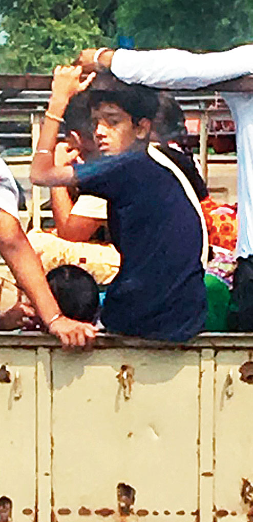 Surinder waves and the children reciprocate. His youngest son Rakesh is at the wheel. The eldest, Nand Kishore, is seated beside him. The rest are at the back.