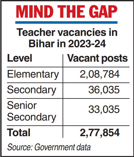 According to official data, Bihar had 2.78 lakh vacant teaching posts in government schools in 2023-24. (See chart)