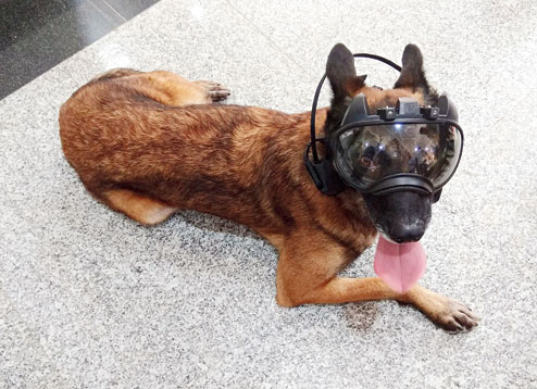 The vision system, which weighs less than 500 grams and has LED-enabled night-vision capabilities, will also allow the handler to pass commands to the dog through inbuilt speakers.