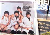 | (Clockwise from left) A Beatles album cover; the Fab Four with Maharishi Mahesh Yogi in Rishikesh; and the ashram |