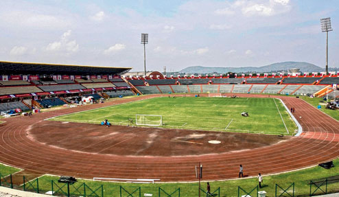 | The Indira Gandhi Athletics Stadium in Guwahati being prepared for the ISL game on Monday. Picture by UB Photos |