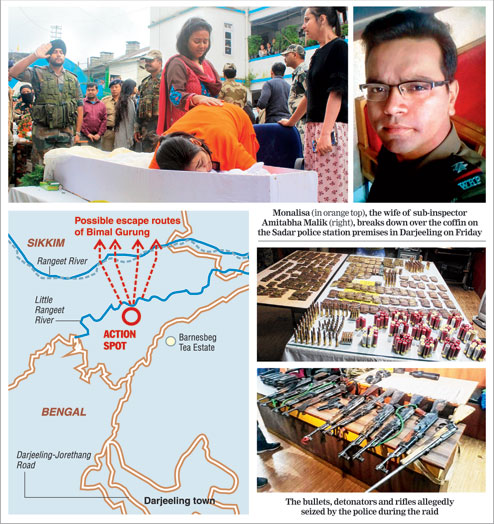 Darjeeling, Oct. 13: A gunfight killed a cop when Bengal police today raided a jungle camp allegedly housing Bimal Gurung and his cadres, who fled across a river and may be hiding in Sikkim, officials said.