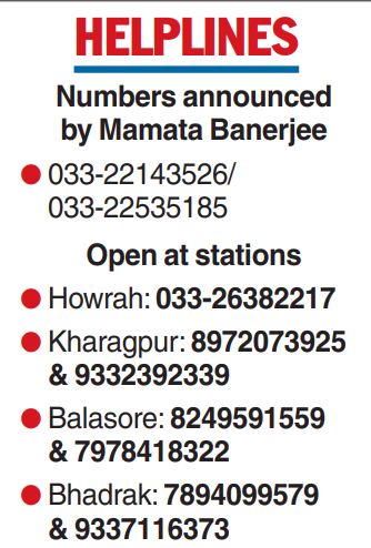 The Odisha government has issued helpline 06782-262286. The railway helplines are 033-26382217 (Howrah), 8972073925 (Kharagpur), 8249591559 (Balasore) and 044- 25330952 (Chennai).