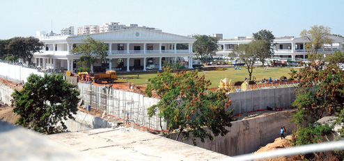 The lavish camp-office that sprawls over a nine-acre plot in Begumpet comprises three blocks. The 40,000sqft residential block has six bedrooms, a visitors' lounge, a chamber for the chief minister, a dining hall, a gymnasium and a home theatre.