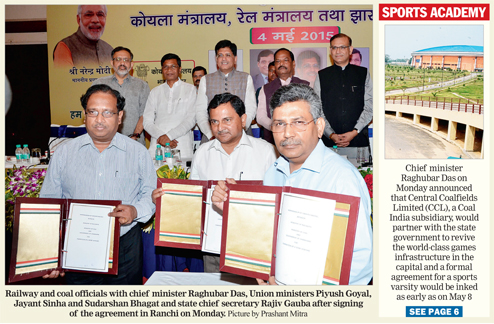 This afternoon, amid a galaxy of Union ministers - Piyush Goyal (minister of state for power, coal and renewable energy), Jayant Sinha and Sudarshan Bhagat (ministers of state for finance and rural development, both Jharkhand MPs) - chief minister Raghubar Das, Union coal secretary Anil Swarup and state chief secretary Rajiv Gauba, the MoU was inked by representatives of railway, coal and state at a city hotel.