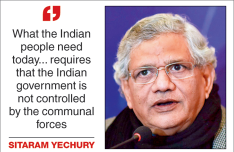 But what we have today in government is the BJP, which is pursuing a four-pronged attack against India and the Indian people: They are more aggressive in the pursuit of neo-liberal reforms, their relentless communal polarisation is aimed at undermining the secular democratic foundations of our republic and to replace it with the RSS vision of a rabidly intolerant fascistic Hindu Rashtra, they are undermining parliamentary democracy and statutory institutions, and there is the complete surrender of India's foreign policy and strategic interests to the diktats of US global security priorities.