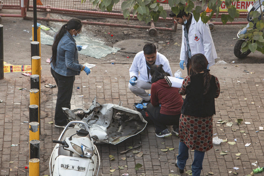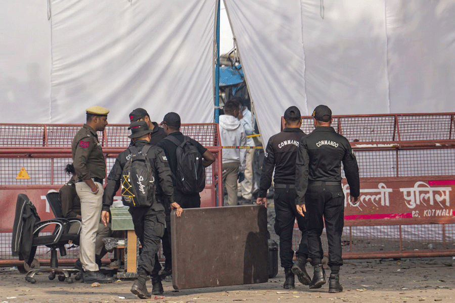 As the sun rose in a smog-filled Delhi, police and investigators rummaged through mangled car remains, shattered glass, dried-up blood near the Red Fort. A white i20 bearing the registration number HR 26 CE 7674, exploded outside Lal Quila Metro Station Gate 1, killing at least nine people and injuring several others.