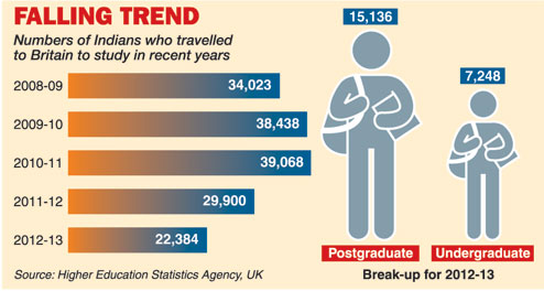 She is likely to raise the matter again when the British minister for universities and science, David Willets, comes visiting later this year at a time fewer Indian students are travelling to Britain because of toughened visa conditions for subsequent employment. (See chart)