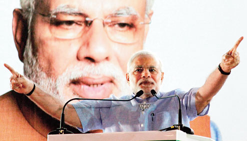 | Prime Minister Narendra Modi addresses an election rally in Nagpur on Tuesday. (PTI) |
