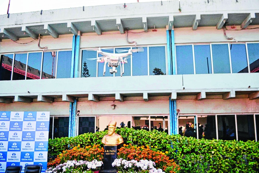 Noamundi (West Singhbhum), Jan. 16: Drone surveillance for mining safety debuted in India today at Tata Steel's Noamundi iron ore mines in West Singhbhum, a sophisticated monitoring technology to alert authorities to subsidence and other threats and avert tragedies like the Lalmatia coal mine cave-in of December 29 that killed at least 18.