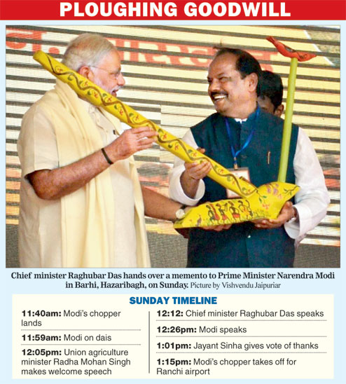 Chief minister Raghubar Das, acknowledging the compliment, also presented a list of achievements of his six-month governance to Modi and the people at large.