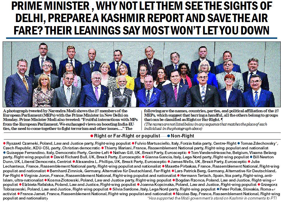 “The MEPs must have been invited in their private capacity,” a EU official in Delhi told The Telegraph.