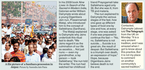 "I personally believe in Santhara. That is something you do in the last stages of your life when you think it is time to leave the world and cleanse yourself of all the bad karma," said Ravi Jain, 38, a chartered accountant in Calcutta.
