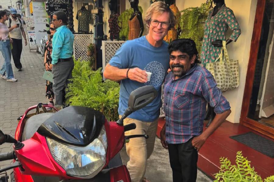 Joint Director of Kerala Tourism, Subair Kutty PI, and Deputy Director Sreekumar G, who joined Rhodes in the online conversation, presented him with a memento at Fort Kochi.