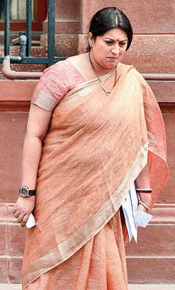 New Delhi, July 16: Smriti Irani has been dropped from the cabinet committee on parliamentary affairs, days after being shifted from the human resource development ministry to the textiles ministry.