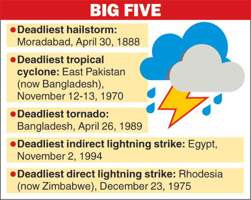 Deadliest hailstorm: The WMO panel used the historical records of John Eliot, who later became the first director-general of the India Meteorological Department, to declare a hailstorm that killed 246 people near Moradabad in Uttar Pradesh on April 30, 1888, as the deadliest.