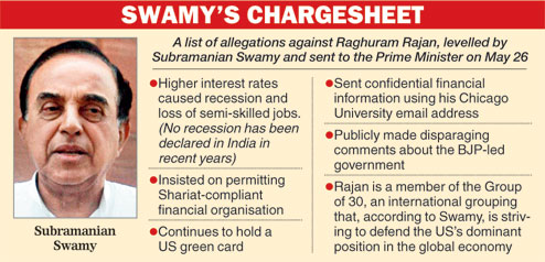 Swamy's campaign of calumny and disinformation against Rajan was dismissed by sources as his "private views" that, they claimed, had started before his Rajya Sabha nomination. However, nobody could explain why Swamy, an RSS favourite, had consciously stepped up his attacks on Rajan after getting his berth with letters to Modi.