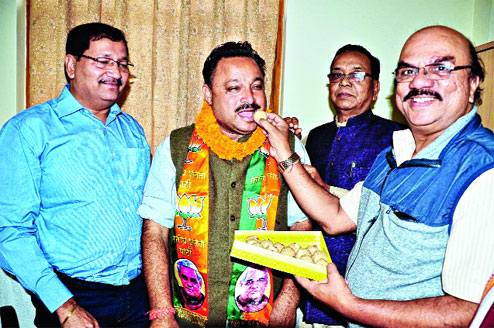 | Anant Pratap Deo being greeted at the BJP party office in Ranchi on Sunday. Picture by Prashant Mitra |