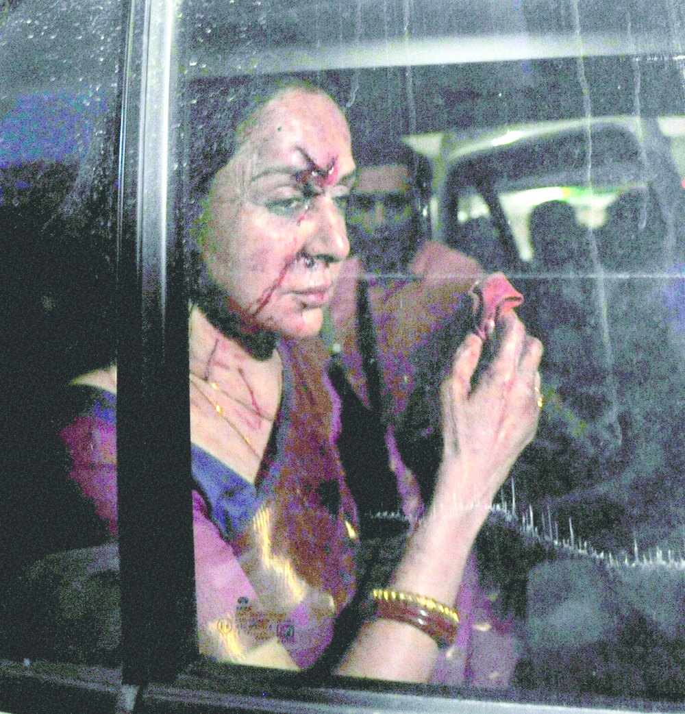 Hema received a stitch on her head but was doing fine, according to an aide.