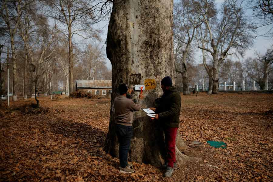 Authorities in Indian Kashmir are geo-tagging thousands of 'Chinar' trees to create a comprehensive database for their management and help conserve them amid threats from rising urbanisation, road-widening projects and diseases.