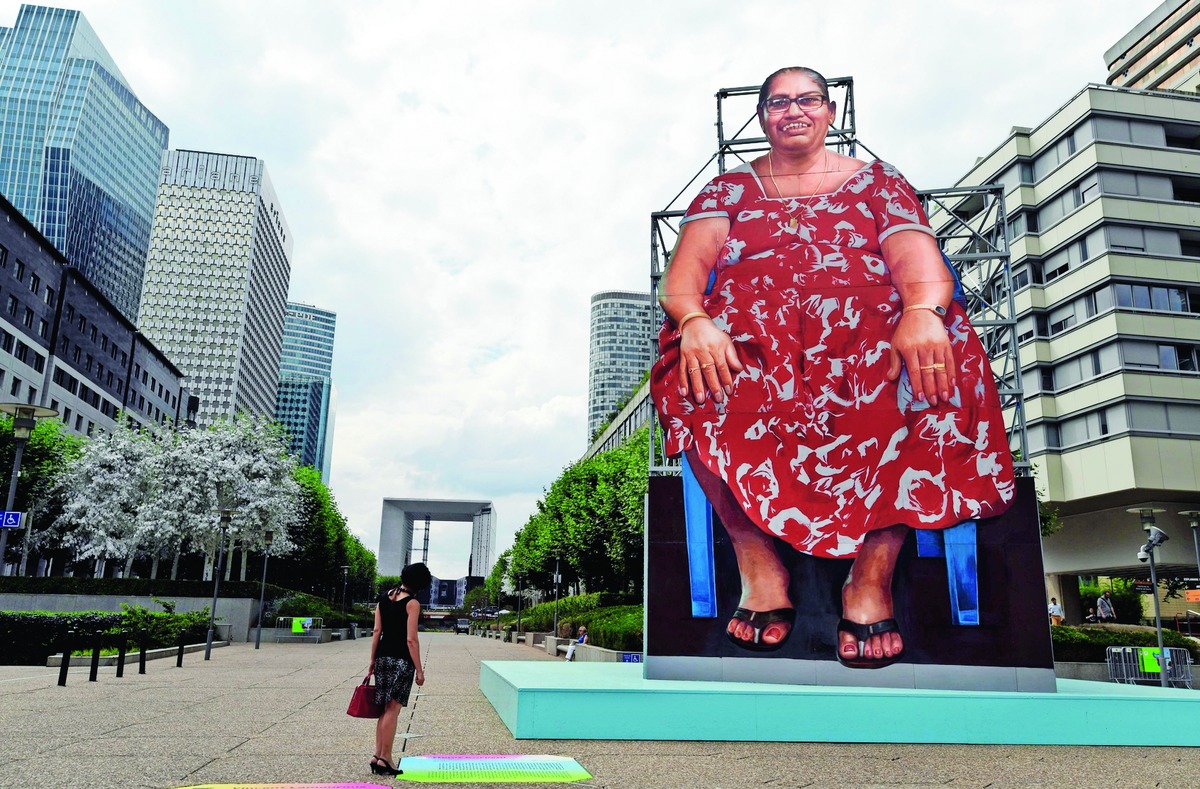 Patrick Devedjian, president of the department of Hauts-de-Seine, the locality where the exhibition is being held, said: "Paris La Défense is mostly known in France as the incarnation of the world of work, with its concrete and steel towers, where passers-by have their eyes on their smartphone.