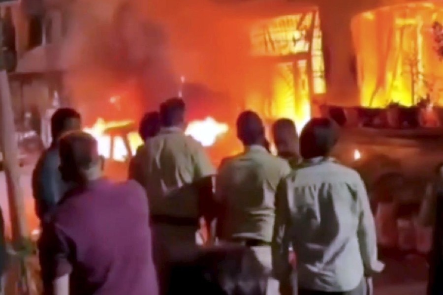 A car was being charged outside the three-storey house. "There was an explosion at the charging point, and the fire in the car then engulfed the house," Police Commissioner Santosh Kumar Singh said.
