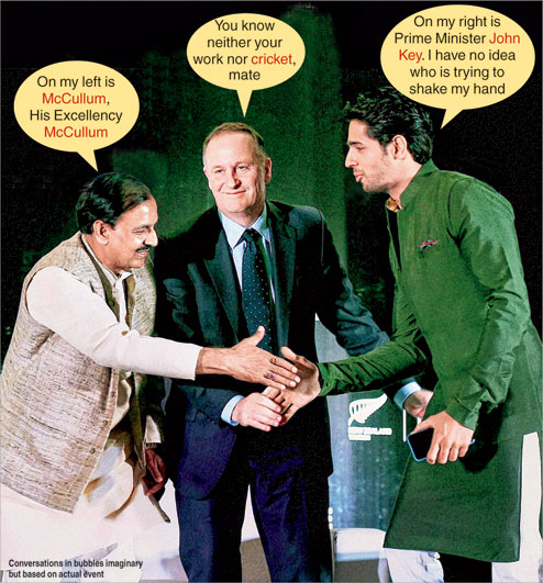 Union tourism and culture minister Mahesh Sharma (left) addressed New Zealand Prime Minister John Key (centre) as “McCullum” at an event to promote New Zealand tourism on Thursday in New Delhi. Brendon McCullum, who had captained New Zealand’s cricket team in all three forms of the game, was also present. Sharma was repaid the compliment minutes later when actor Sidharth Malhotra (right), New Zealand tourism’s ambassador in India, rose to speak but could not recall the minister’s name. After fumbling for a few seconds, Malhotra joked: “It’s payback time.” (PTI)