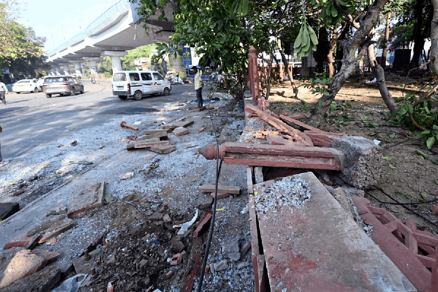 New Delhi: A damaged railing after a sleeper bus overturned near Hanuman Mandir, in Karol Bagh area, New Delhi, Wednesday, March 25, 2026. Two passengers were killed and 23 others injured in the incident. (PTI Photo)