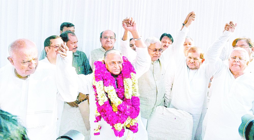 New Delhi, April 15: Six Janata party descendants today announced their merger under the leadership of former Samajwadi Party leader Mulayam Singh Yadav to take on a resurgent BJP, especially in the context of the upcoming Assembly elections in Bihar later this year.