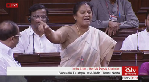 New Delhi, Aug 1 (PTI): Sasikala Pushpa, the AIADMK lawmaker who had slapped DMK rival Tiruchi Siva at Delhi airport on Saturday, claimed in the Rajya Sabha on Monday that she is facing a threat to her life in her home state Tamil Nadu.