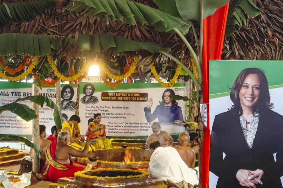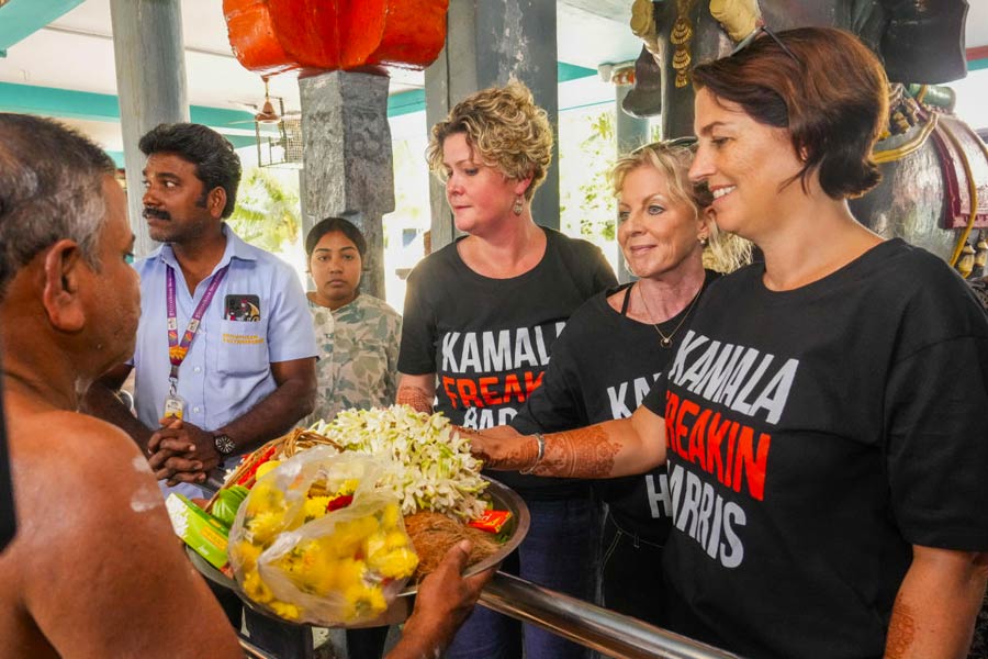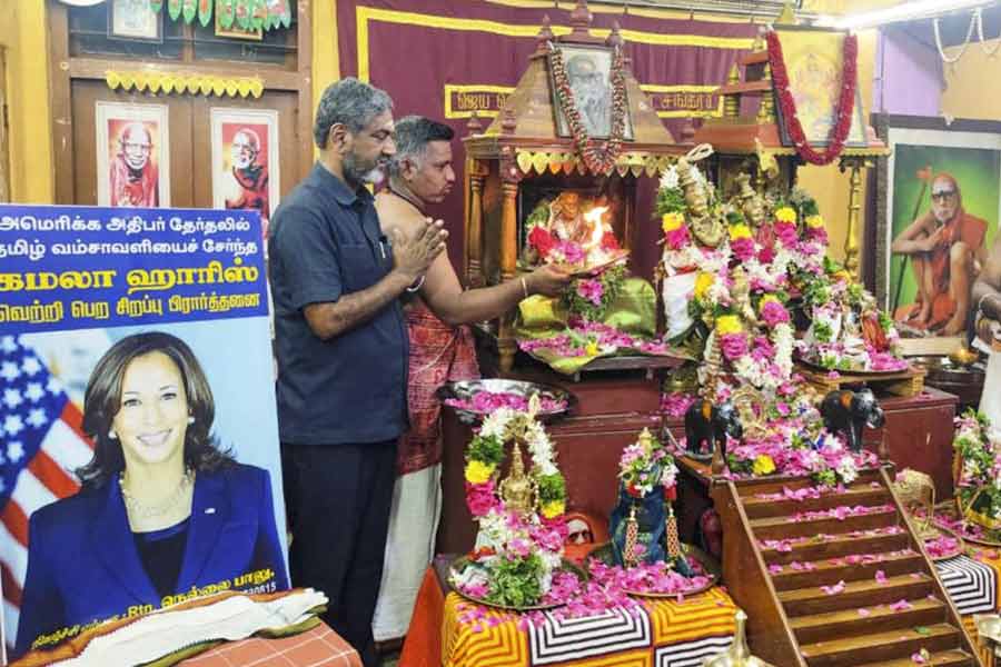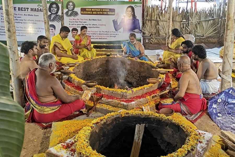 “Our sincere prayers are for the victory of the daughter of the soil in the election and to become the president of the most influential country in the world,” says councillor Arulmozhi and her spouse T Sudhakar, who have organised a special abishekam of sandalwood and turmeric, besides a special 'archanai' to the presiding deity at the Sri Dharma Sastha temple, the family deity of Kamala’s ancestors.