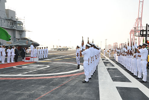 It was the first visit by a foreign head of state to the carrier, the largest in the Indian Navy's fleet. Colombo is also the Vikramaditya's first overseas deployment. The carrier is on its way to waters off Visakhapatnam for the International Fleet Review being hosted by the Indian Navy in early February.