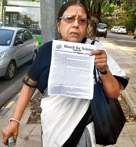 Sengupta, former professor of physics at Miranda House, a Delhi college, was participating in the "March for Science", held in many places in India in tandem with similar events across the world.