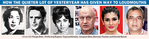 The fiery words of Kher - who recently bagged the Padma Bhushan - his wife and BJP Lok Sabha member Kirron Kher and party MP Paresh Rawal are unlike those of actors who had come to politics during the years of Jawaharlal Nehru, Indira Gandhi, Rajiv Gandhi and Atal Bihari Vajpayee.