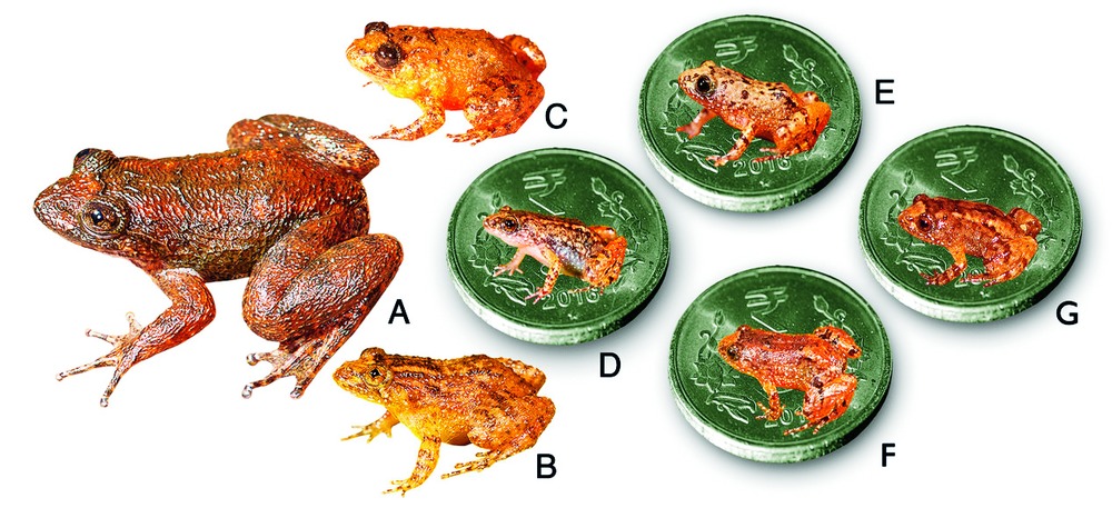 University of Delhi amphibian specialist Satyabhama Das Biju and his students spotted the frogs, some so small they will fit atop a coin or on a thumbnail, during surveys in the southern Western Ghats forests in Tamil Nadu and Kerala between 2013 and 2016.