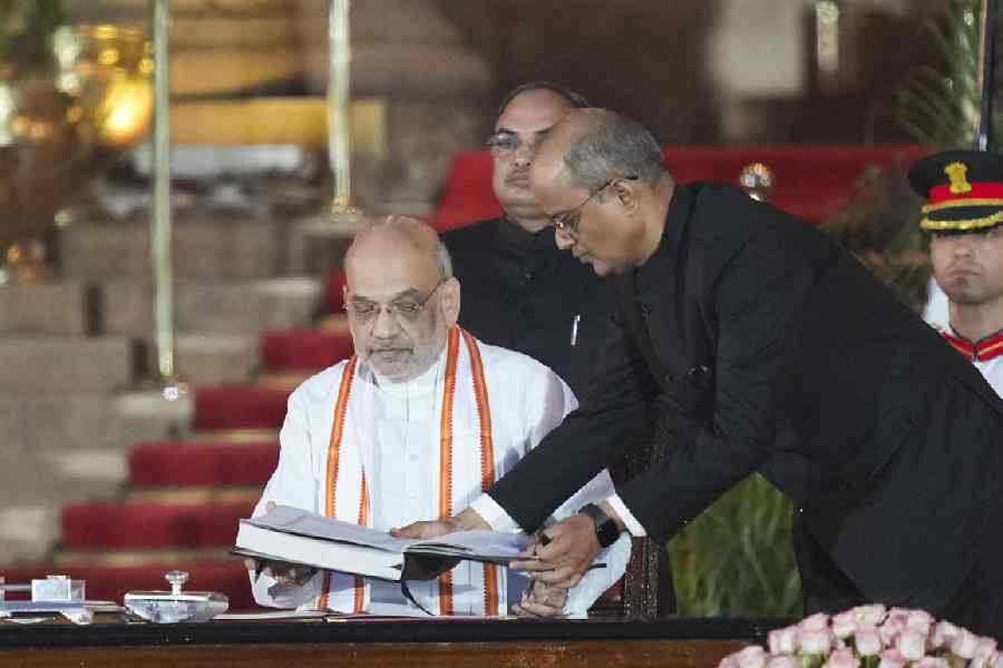 BJP MP Amit Shah takes oath as minister during the swearing-in ceremony of new Union government.