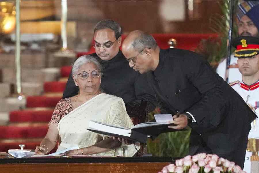 BJP MP Nirmala Sitharaman takes oath as minister during the swearing-in ceremony of new Union government.