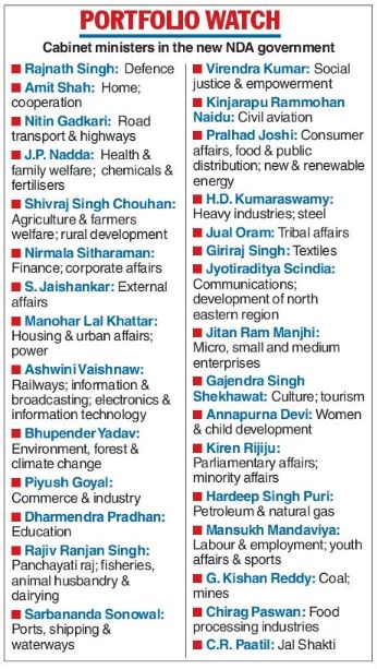Modi on Monday allotted ministry portfolios almost 24 hours after his third government had been sworn in, retaining all the top four ministers in the departments they held in his previous administration while making very little concessions for the allies, barring the TDP.