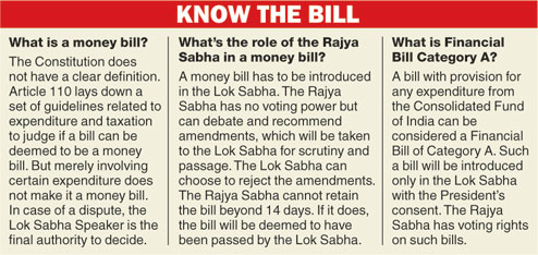 Opposition parties have in recent months frequently complained that the Narendra Modi regime has been taking the money bill route for ordinary bills to bypass the Rajya Sabha, where the government is in a minority. The Rajya Sabha does not have voting rights on money bills.